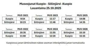 Lättähattu-museojunat Kuopion ja Siilinjärven välillä 25.10.2025